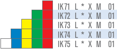 Приклад і розшифровка позначення: IK53L024XM03 - Світлова колона діаметр 50мм, 3 яруса (червоний, зелений, жовтий), світлодіоди 24В алюмінієвий патрубок 100мм